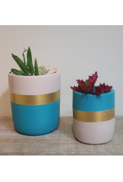 Set de 2 pots cylindre bleu