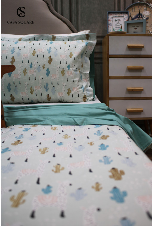 Housse de couette 140*200 cm  cactus  bleu + 2 taies d'oreiller